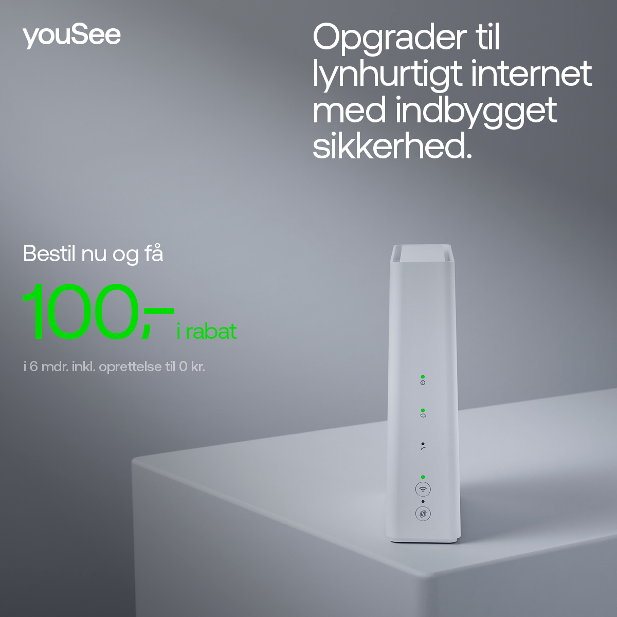 Lige nu får du 100,- i rabat på internet i 6 mdr. inkl. oprettelse til 0 kr. Du vælger mellem hastigheder fra 200
